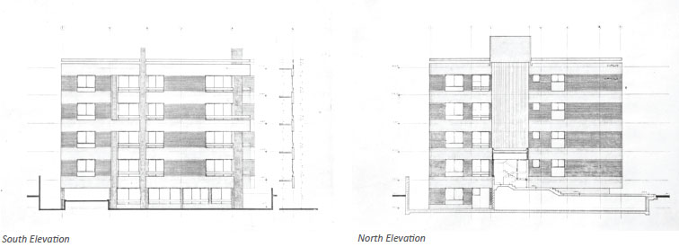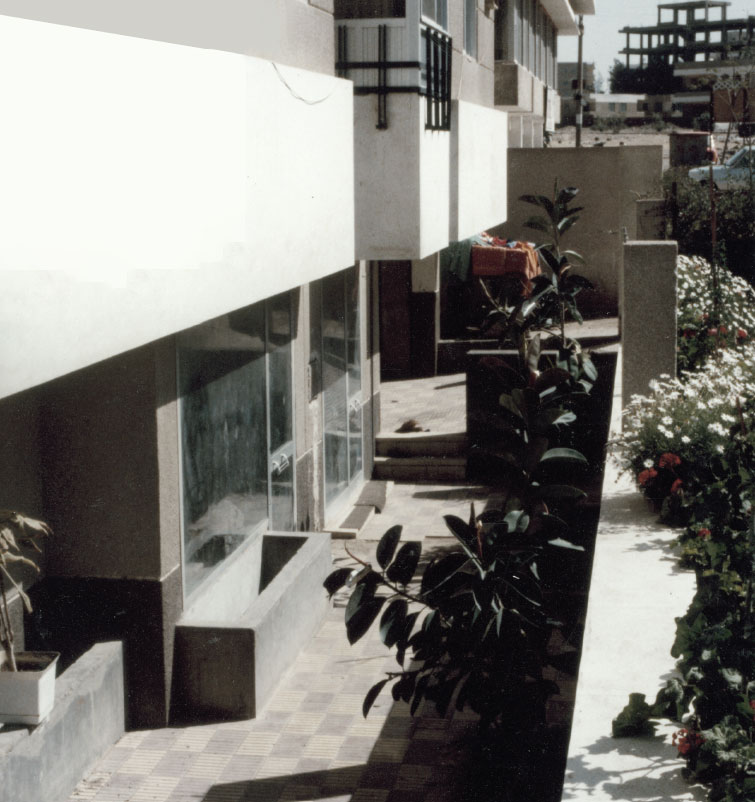 To maximize the corner lot, all windows open to the streets, thereby providing the appropriate climatic orientation of North-East and North-West. The windows of some of the bedrooms and of the service rooms (bathrooms, kitchens, etc.) face the L-shaped courtyard.