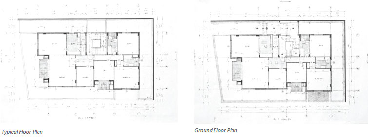 An eight-unit residential block (150 square meters each) with a penthouse unit (300 square meters) on the top floor.