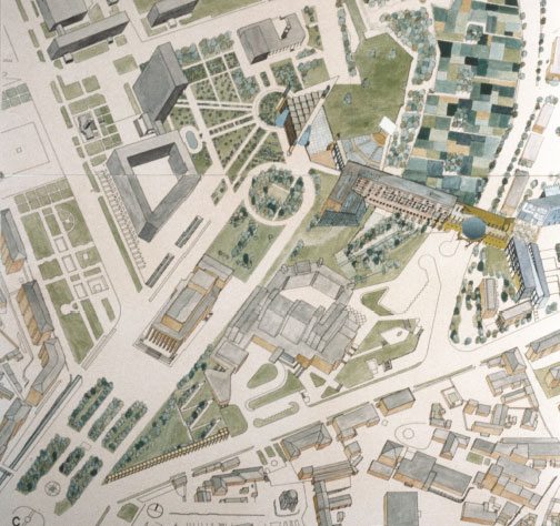 The Ulugh Beg Cultural Complex program included a museum, a library, a crafts school, a planetarium, a music hall, multi-functional halls, an open-air theater, a hotel, a mosque, service facilities and parking. The competition called for ideas to revitalize the historical core and reflect the pluralistic culture of Central Asia. The new complex was to become a catalyst for a new cultural and urban identity for the city’s inhabitants.